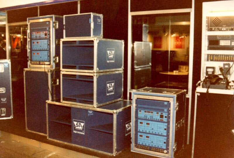 In a nutshell, SA started manufacturing loudspeaker cabinets in 1977 (the W-bin), following with amplifiers in 1980 (the SA 500); The big "change" came in 1986 with the Blue Box, the first "Ribbon Compact Driver-loaded" product, with more to follow. After that the Champion Series came (1987) as "modular" system (to be transformed into the current "Champ Series"). The Performer system was introduced in 1990 (with PPA 1200 amp).