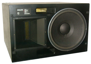 The enclosure, LED-panel (with Philips logo and part number), woofer and horn were all painted black.